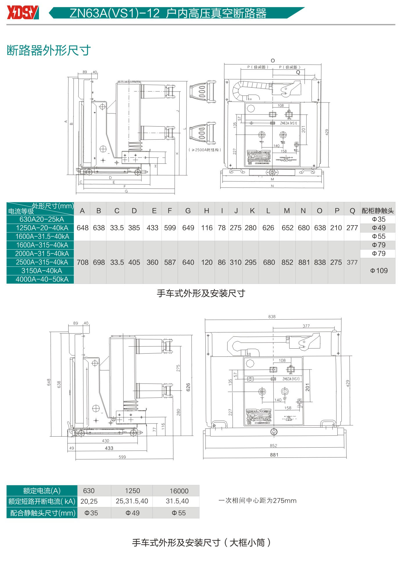 侧置式户内高压真空断路器ZN63A(VS1)-12C型
